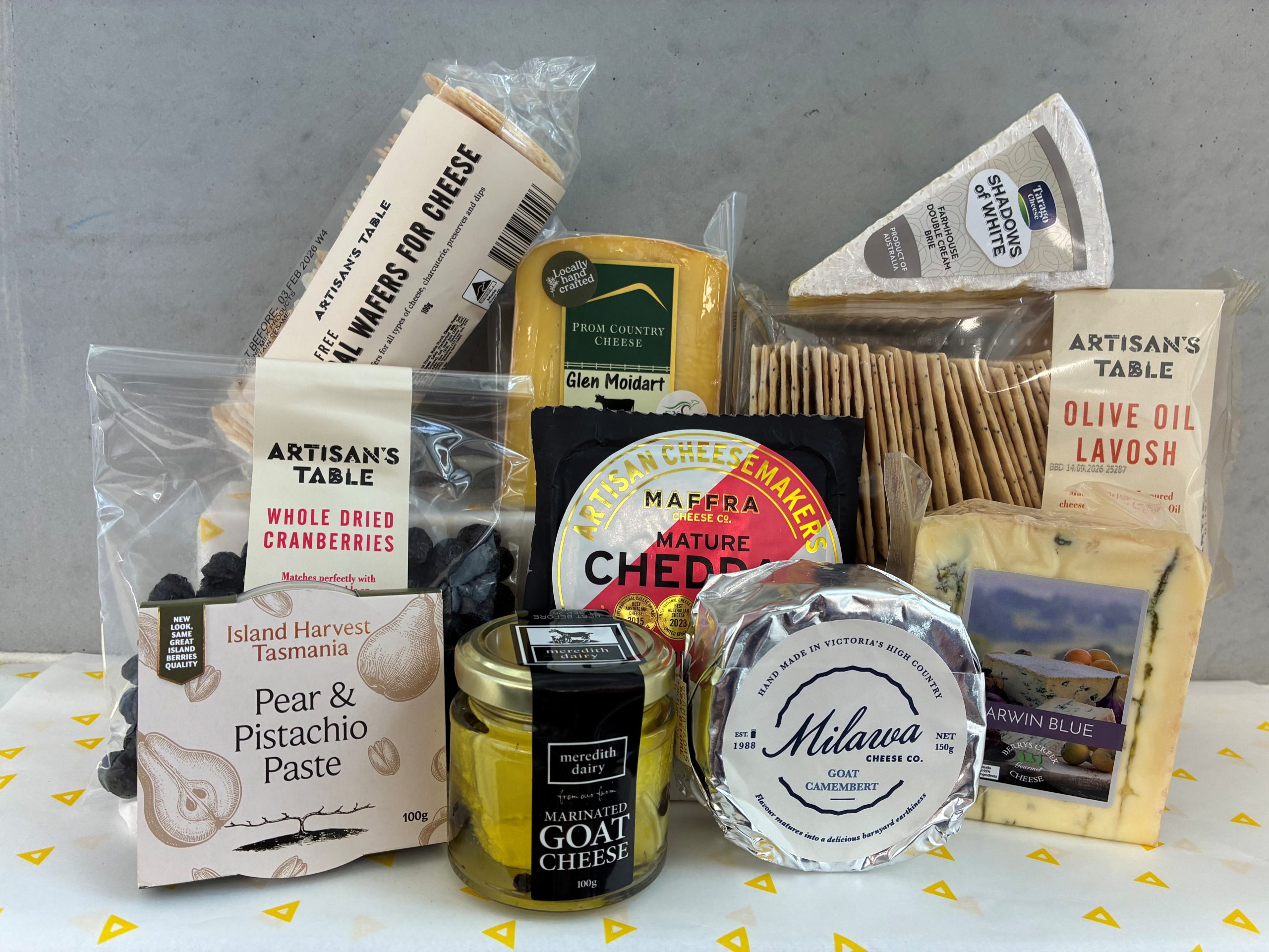 Our ‘Favourites from Victoria’ Hamper provides a platter style selection of our favourite local cheeses and their associated accompaniments.
